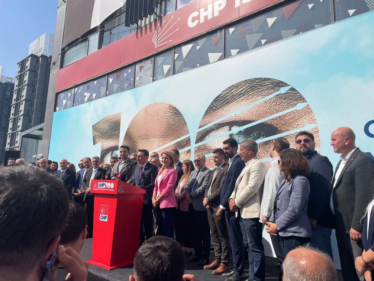 "Bugün burada, CHP İstanbul il başkanlığı önünde sizlerle birlikte olmaktan çok mutluyum. Ne mutlu bize ki gözbebeğimiz, Cumhuriyet Halk Partimiz 100 Yaşında!