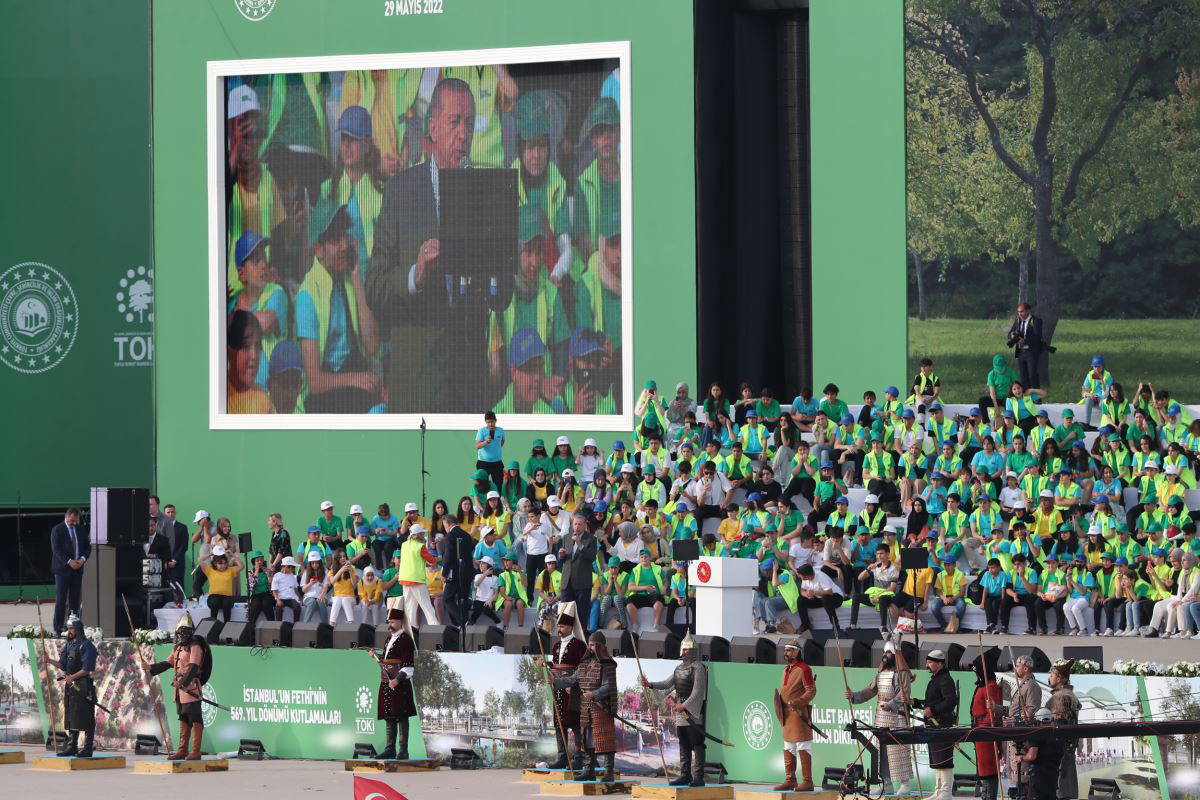 AKP'li Cumhurbaşkanı Recep Tayyip Erdoğan, Atatürk Havalimanı'nda düzenlenen İstanbul'un Fethi'nin 569. yılı kutlamaları ve Millet Bahçesi ilk fidan dikim töreninde açıklamalarda bulundu.