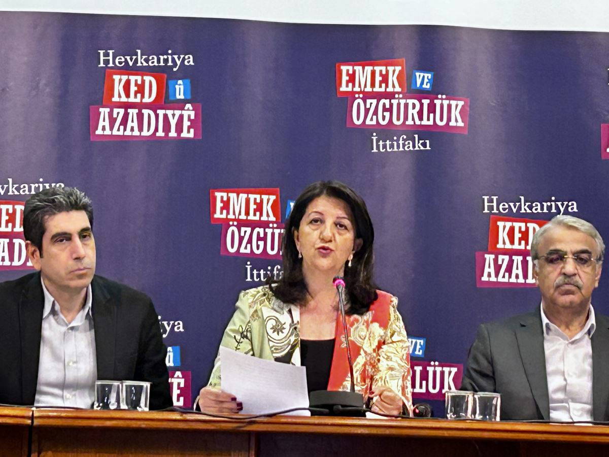 İttifakın tutum belgesini açıklayan HDP Eş Genel Başkanı Pervin Buldan, "Tarihsel sorumluluğumuzu yerine getireceğiz. Cumhurbaşkanlığı seçimlerinde aday çıkarmayacağımızı deklare ediyoruz" ifadelerini kullandı.