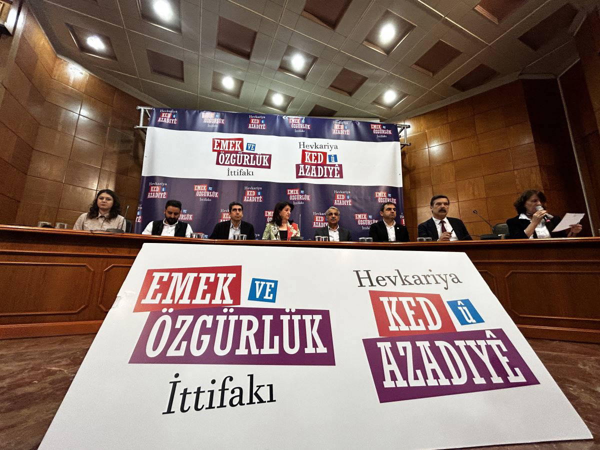 Emek ve Özgürlük İttifakı, cumhurbaşkanlığı seçimine dair tutum belgesini Dünya Ticaret Merkezi’nde düzenlediği basın toplantısında açıkladı.