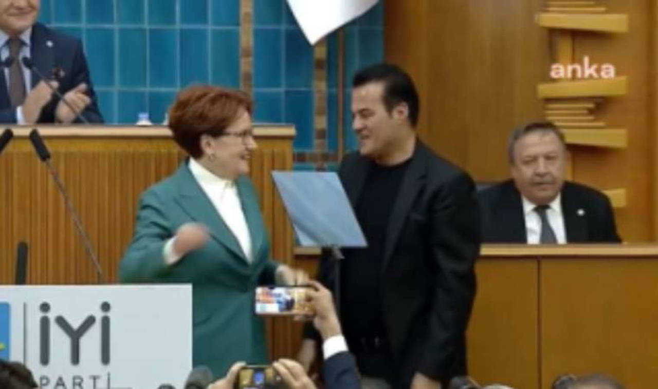 Hakan Peker'e rozetini kürsüde Akşener taktı.
