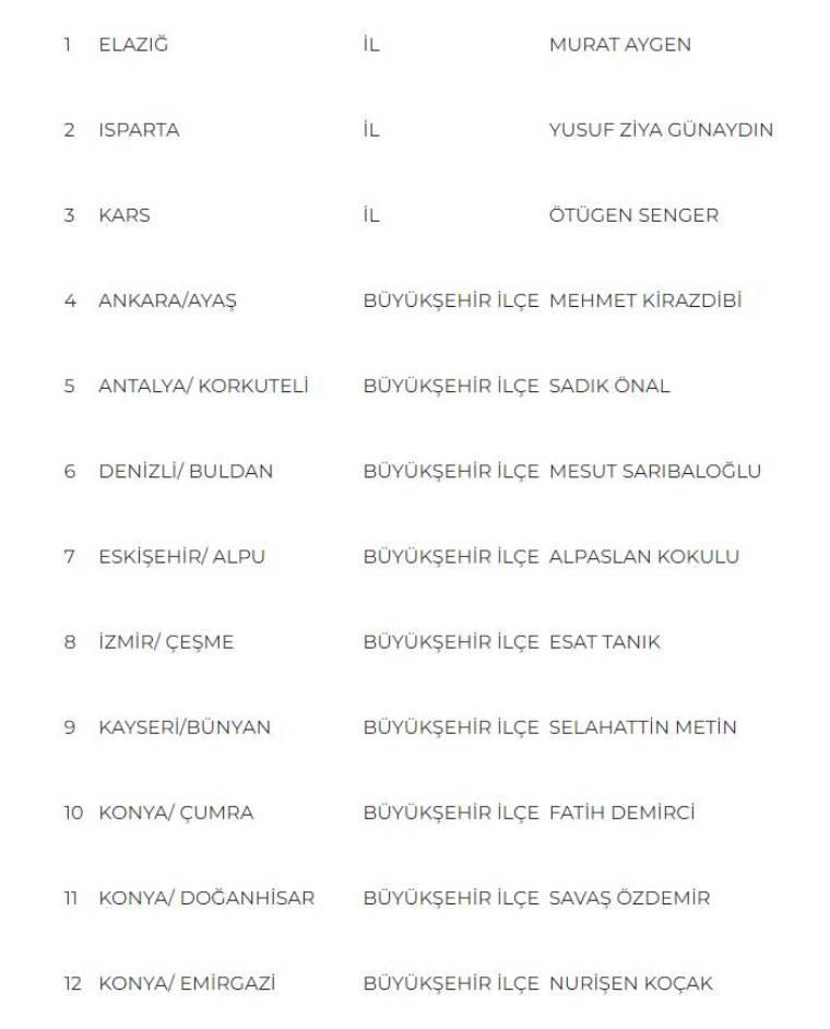 Parti daha önce 110 belediye başkan adayını daha duyurmuştu.