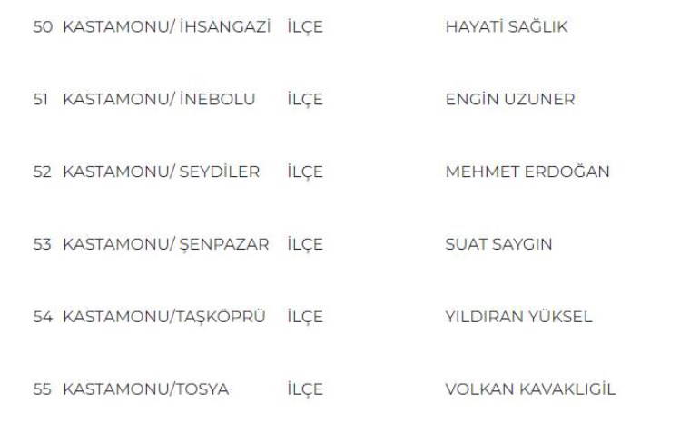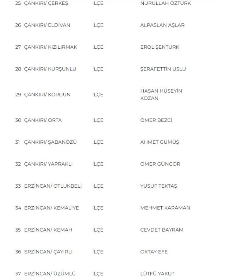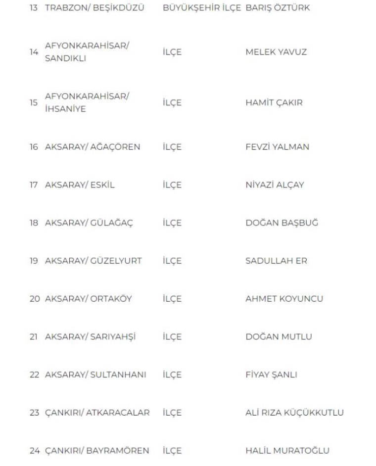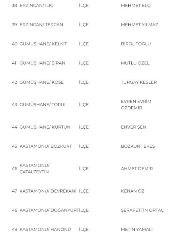 MHP Genel Başkan Yardımcısı Sadir Durmaz’ın açıkladığı aday listesi şöyle: