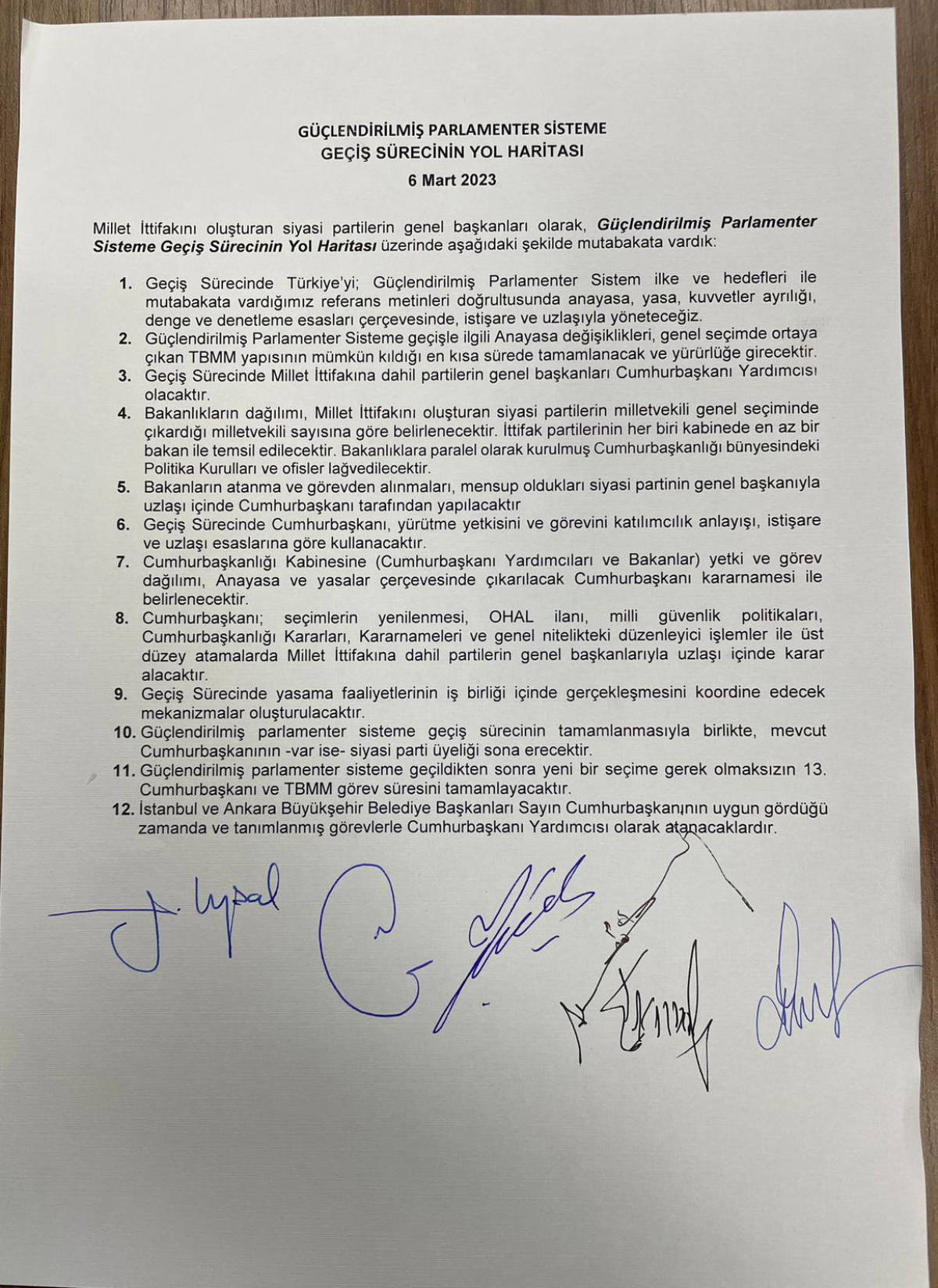 Kılıçdaroğlu'nun açıklamasının ardından "Güçlendirilmiş Parlamenter Sisteme Geçiş Sürecinin Yol Haritası" yazılı olarak paylaşıldı.