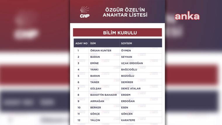 CHP Genel Başkanı Özgür Özel'in CHP'nin 21. Olağanüstü Kurultayı'nda Bilim Kurulu için sunduğu 12 kişilik liste ise şu şekilde oldu: