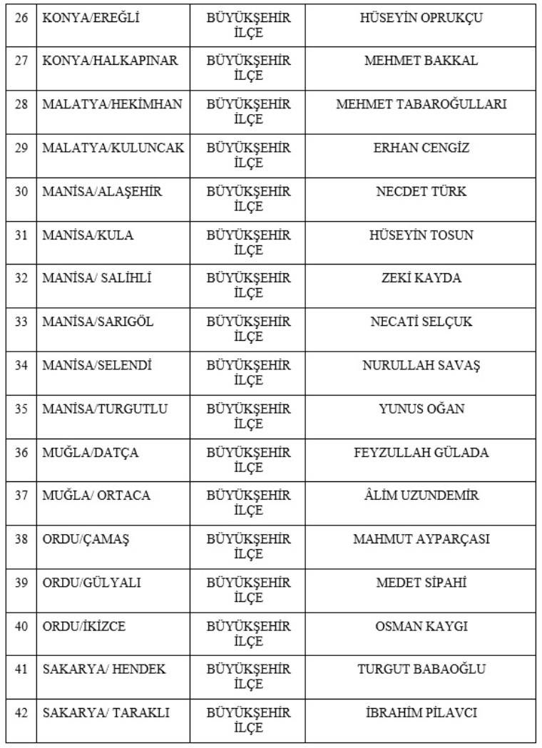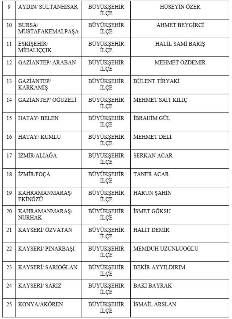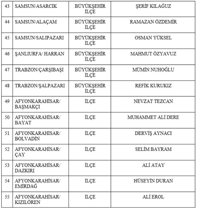 İsimler, MHP Genel Başkan Yardımcısı Sadir Durmaz tarafından kamuoyu ile paylaşıldı.