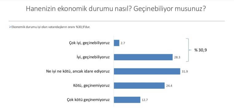 Katılımcılara yöneltilen "Geçinebiliyor musunuz?" sorusuna, ankete katılanların sadece yüzde 30,9'u evet cevabını verirken hayatından memnun olduğunu söyleyenlerin toplam oranı %30'da kaldı. Böylece "geçinemediğini" belirtenler yüzde 69,01 olarak kaydedildi.