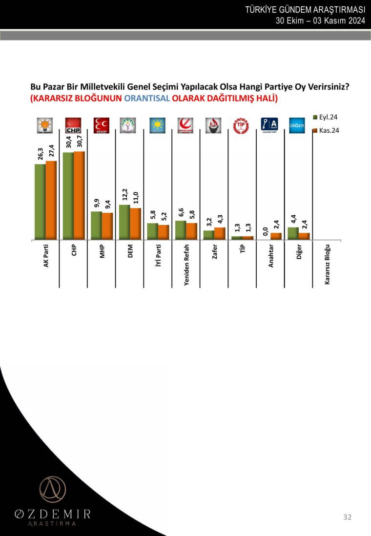 Özdemir Araştırma, 30 Ekim - 3 Kasım tarihleri arasında yaptığı anketin sonuçlarını açıkladı.