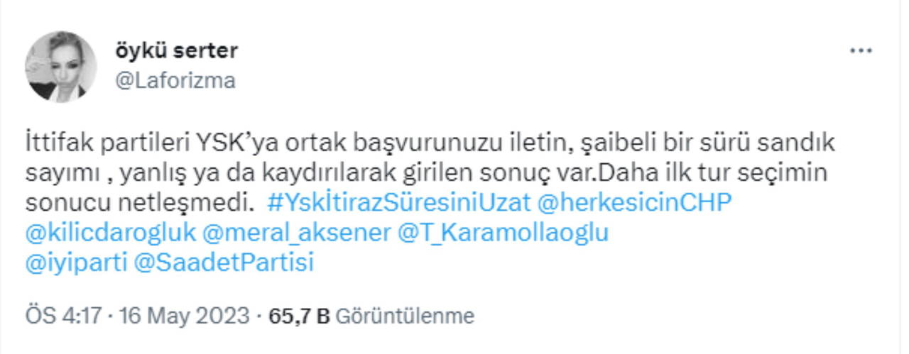 Sosyal medyada paylaşılan tutanaklarla YSK kayıtlarındaki oyların birbirini tutmadığı, kimi yerlerde CHP oylarının AKP'ye ve MHP'ye yazıldığı, çoğunlukla Yeşil Sol Partisi'nin oylarının da MHP'ye yazıldığı görüldü.