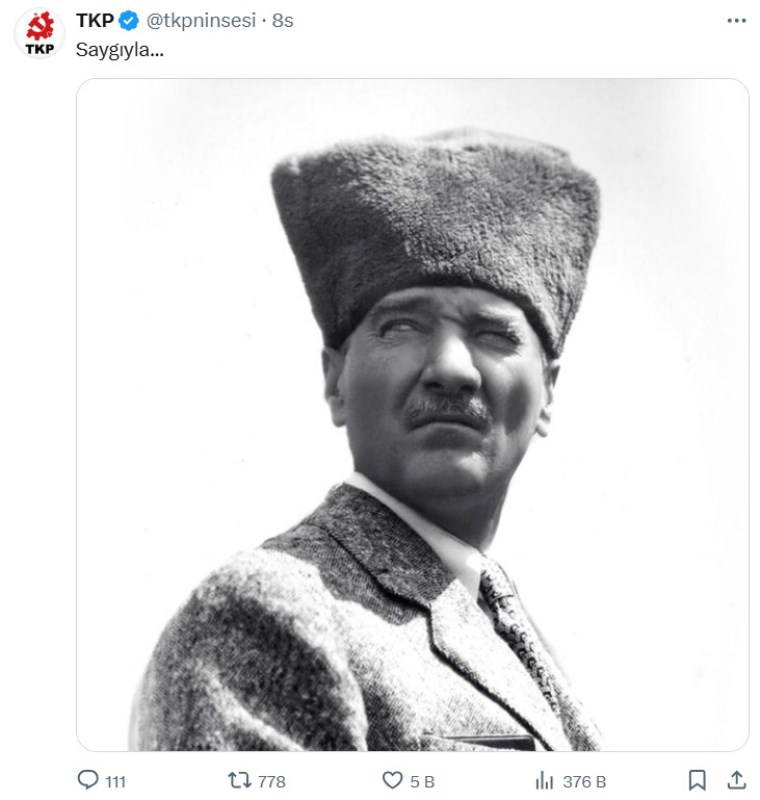 TKP ise fotoğrafını “Saygıyla” notuyla paylaşarak, Atatürk’ü andı.