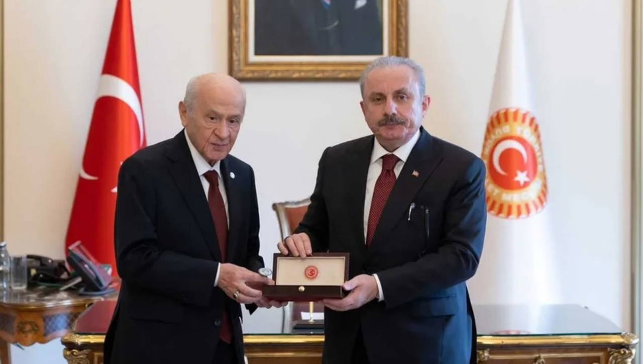 Görevi devralan Bahçeli ise "Bu görevi devralmaktan onur duyuyorum. Milletimiz için hayırlı olur" ifadelerini kullandı. Şentop, mührü Bahçeli'ye teslim etti.