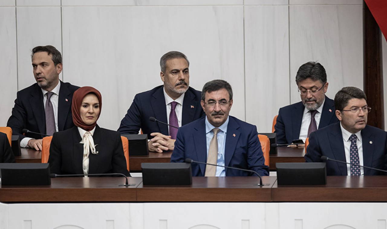 Cumhurbaşkanı Yardımcısı Cevdet Yılmaz, Adalet Bakanı Yılmaz Tunç, Aile ve Sosyal Hizmetler Bakanı Mahinur Özdemir Göktaş, Çalışma ve Sosyal Güvenlik Bakanı Vedat Işıkhan, Çevre, Şehircilik ve İklim Değişikliği Bakanı Mehmet Özhaseki, Dışişleri Bakanı Hakan Fidan, Enerji ve Tabii Kaynaklar Bakanı Alparslan Bayraktar, Gençlik ve Spor Bakanı Osman Aşkın Bak, Hazine ve Maliye Bakanı Mehmet Şimşek, İçişleri Bakanı Ali Yerlikaya, Kültür ve Turizm Bakanı Mehmet Nuri Ersoy, Milli Eğitim Bakanı Yusuf Tekin, Milli Savunma Bakanı Yaşar Güler, Sağlık Bakanı Fahrettin Koca, Sanayi ve Teknoloji Bakanı Mehmet Fatih Kacır, Tarım ve Orman Bakanı İbrahim Yumaklı, Ticaret Bakanı Ömer Bolat, Ulaştırma ve Altyapı Bakanı Abdulkadir Uraloğlu TBMM Genel Kurulunda ant içti.
