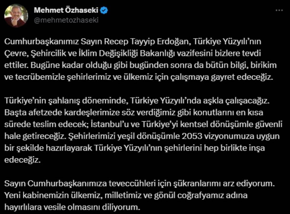 Buna göre, Cumhurbaşkanı Yardımcısı Cevdet Yılmaz, Adalet Bakanı Yılmaz Tunç, Aile ve Sosyal Hizmetler Bakanı Mahinur Özdemir Göktaş, Çalışma ve Sosyal Güvenlik Bakanı Vedat Işıkhan, Çevre, Şehircilik ve İklim Değişikliği Bakanı Mehmet Özhaseki, Dışişleri Bakanı Hakan Fidan, Enerji ve Tabii Kaynaklar Bakanı Alparslan Bayraktar, Gençlik ve Spor Bakanı Osman Aşkın Bak, Hazine ve Maliye Bakanı Mehmet Şimşek, İçişleri Bakanı Ali Yerlikaya, Kültür ve Turizm Bakanı Mehmet Nuri Ersoy, Milli Eğitim Bakanı Yusuf Tekin, Milli Savunma Bakanı Yaşar Güler, Sağlık Bakanı Fahrettin Koca, Sanayi ve Teknoloji Bakanı Mehmet Fatih Kacır, Tarım ve Orman Bakanı İbrahim Yumaklı, Ticaret Bakanı Ömer Bolat, Ulaştırma ve Altyapı Bakanı Abdülkadir Uraloğlu oldu.
