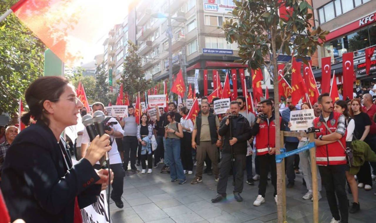Daha sonra sözü alan TKH Genel Başkanı Aysel Tekerek ise yaptığı konuşmada "Bugün bu ülkede sermaye sınıfı, patronlar Cumhuriyet’i lime lime edip midelerine indirdiler. Cumhuriyet kolay kazanılmadı. Emperyalizmden kurtuluş ebetteki kolay olmadı. Kuruluş da kolay olmadı" dedi.