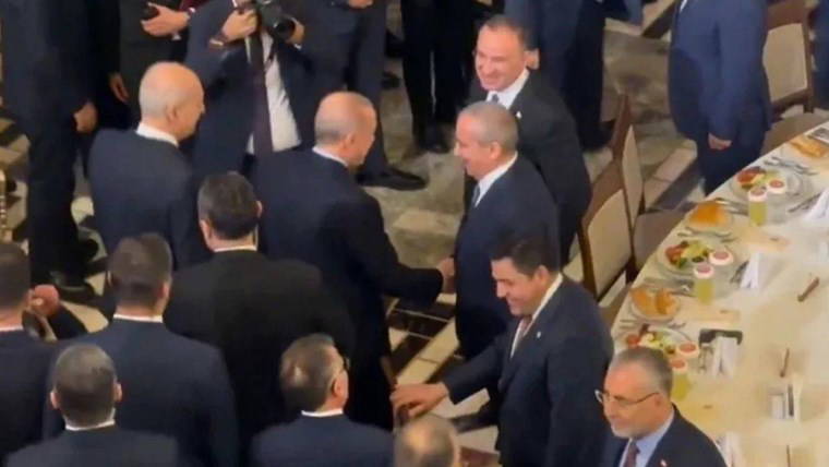 TBMM'de düzenlenen iftar programına katılan AKP'li Cumhurbaşkanı Recep Tayyip Erdoğan, DEM Parti Meclis Başkanvekili ve İmralı heyetinde olan Sırrı Süreyya Önder’in elini sıkarak, ayaküstü sohbet etti.