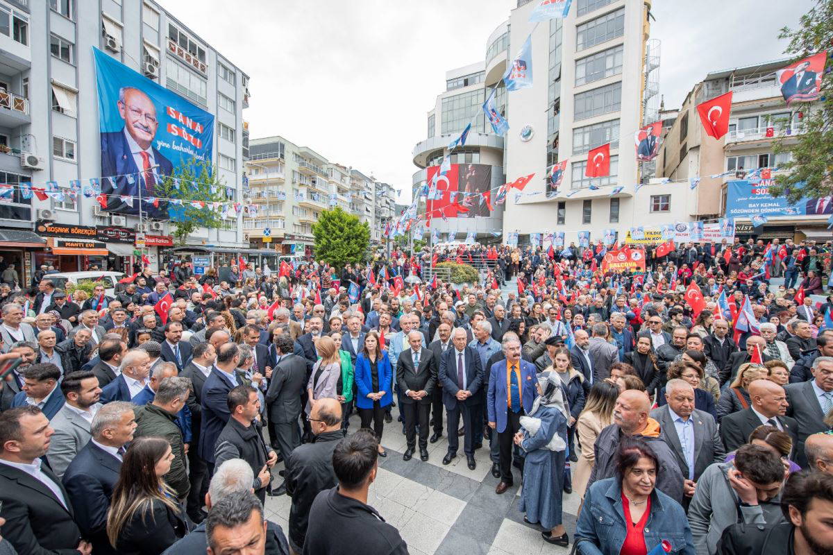 İzmir Büyükşehir Belediye Başkanı Tunç Soyer, “O kadar hakkımızı gasp ettiler ki. Çok az kaldı. İzmir'i Türkiye yapacağız, Türkiye İzmir gibi olacak. Bu coğrafya, topraklar dünyanın en bereketli toprakları. Halktan yana olmayan iktidarlar o bereketli toprakların ürettiği refahı bazı çetelere, zümrelere aktardılar. Eğer o para, refah bu topraklarda yaşayan gençlerimizin, çocuklarımızın refahı için harcansaydı bugün işsizlik, yüksek enflasyon, yoksulluk, hiçbiri olmazdı. Ama çok az kaldı. Trafoya kediyi sokmayacağız. Sonuna kadar, son sandık açılana kadar sımsıkı sahip çıkacağız. Asla enseyi karartmayın, umutsuzluğa kapılmayın. Yoksulluk da, işsizlik de, sefalet de hiçbiri kader değil. Başka bir ülke mümkün. Sadece 16 gün kaldı. Uyku uyumayacağız, çalışmaya devam edeceğiz. Ancak sımsıkı çalışırsak bu mümkün. Yepyeni bir yüzyıla, yepyeni bir ülkeyle gireceğiz. Yüzünde güller açacak insanların. Yüzyılın seçimini kazanacağız ve bu ülkede bir şey değişecek her şey değişecek” diye konuştu.