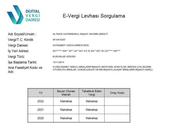 Efendim 2020, 2021, 2022 yıllarında tahakkuk eden vergi 0.