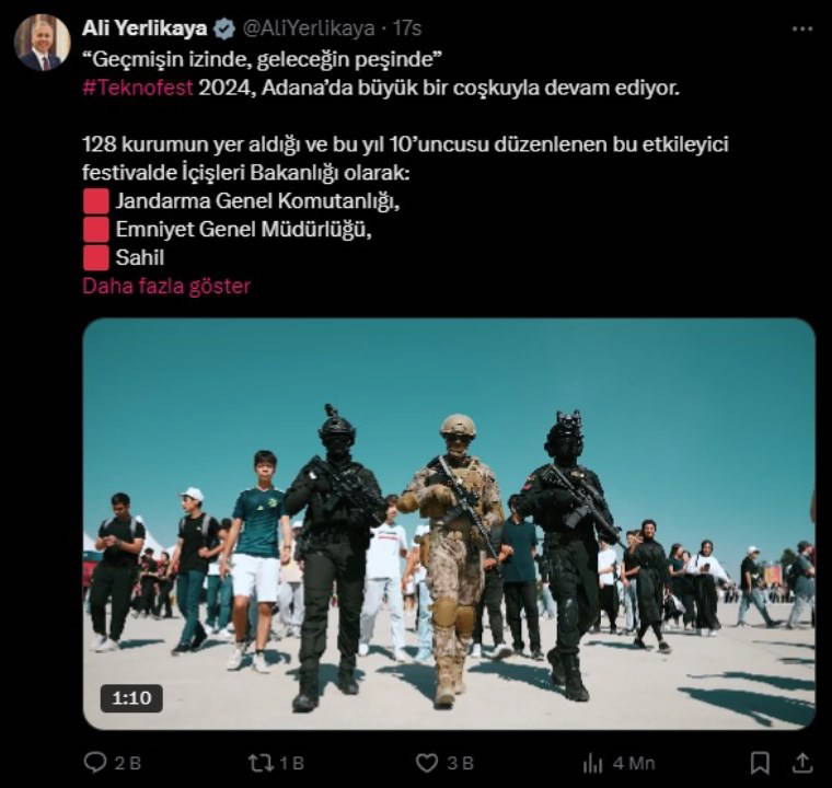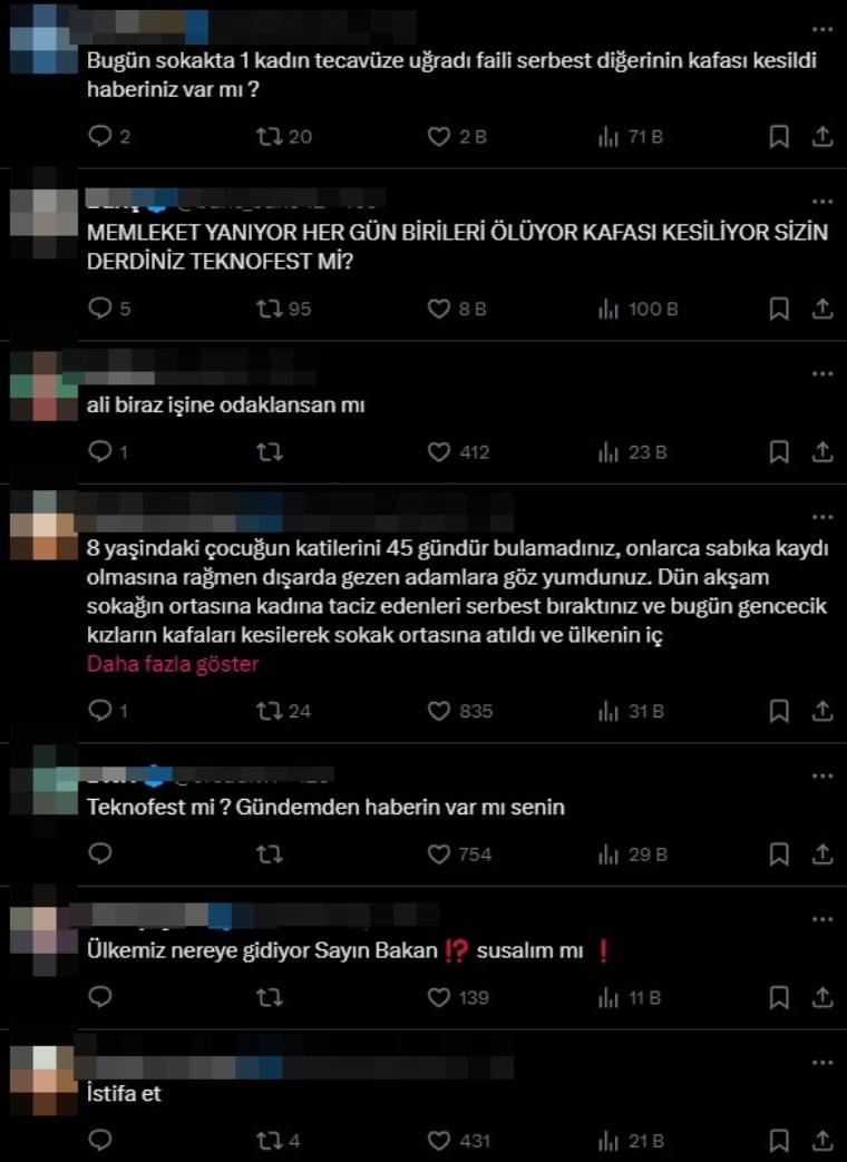 Yaşanan olaylar infial yaratırken, İçişleri Bakanı Ali Yerlikaya'nın sosyal medya hesabından yapılan "TEKNOFEST" paylaşımı tepki çekti.