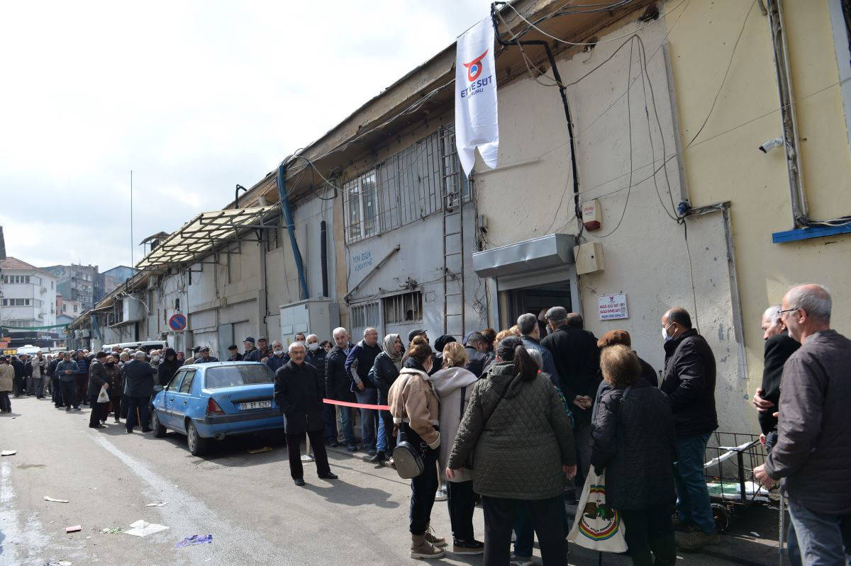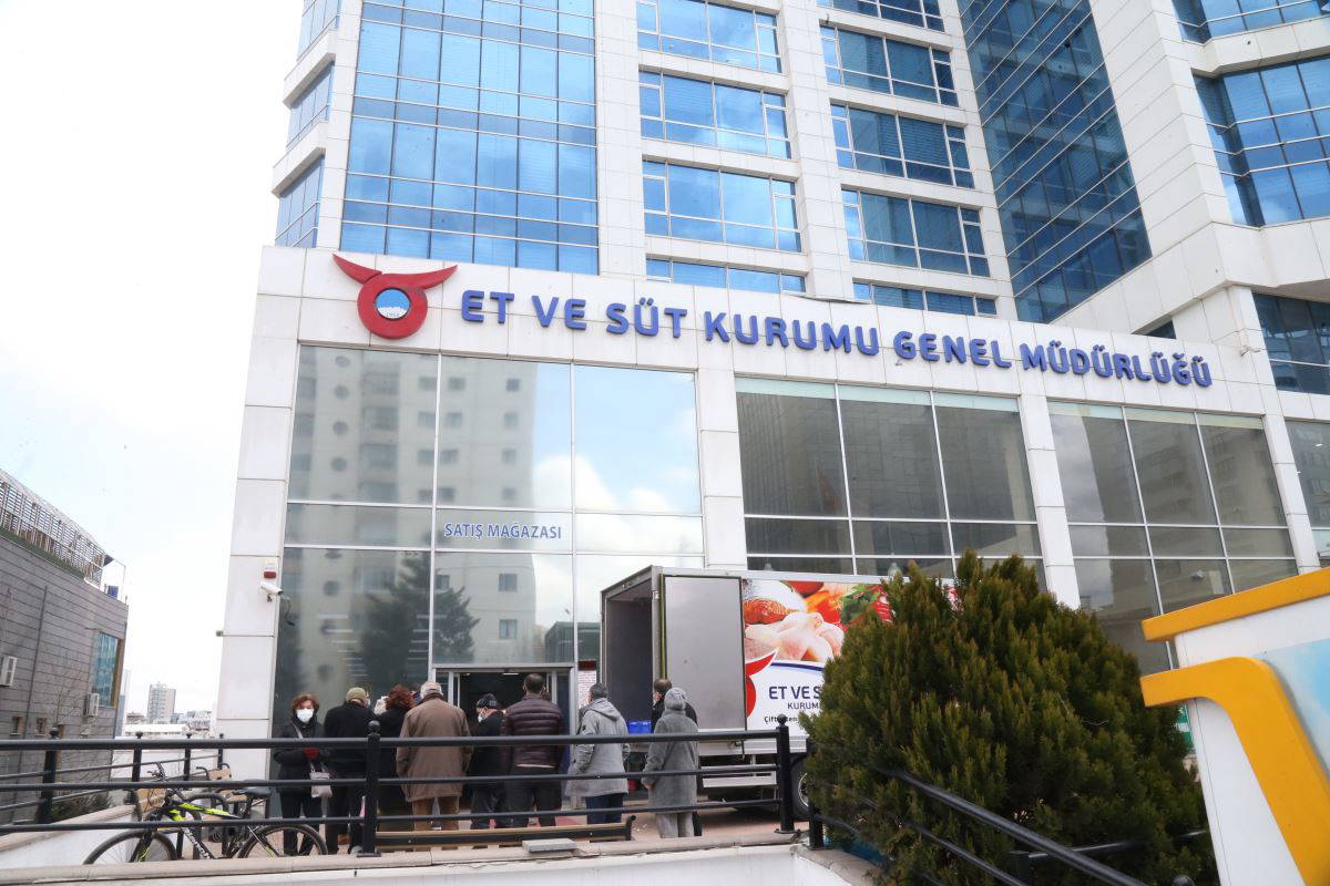 Ankara’da Et ve Süt Kurumu’nun (ESK) piyasanın yarı fiyatına sattığı et ve kıymadan birer kilo alabilmek için yurttaşlar uzun kuyruklar oluşturuyor. ESK’nin her geçen gün kuyruklar nedeniyle kentin lüks semti Çukurambar’daki cadde üzerinden Ulus’taki bir ara sokağa kaydırılan satış noktasında yurttaş saatlerce sıra bekliyor.