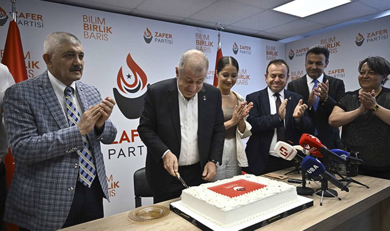 Konuşmasının ardından Özdağ, toplantıya katılanlarla birlikte yıl dönümü pastası kesti.
