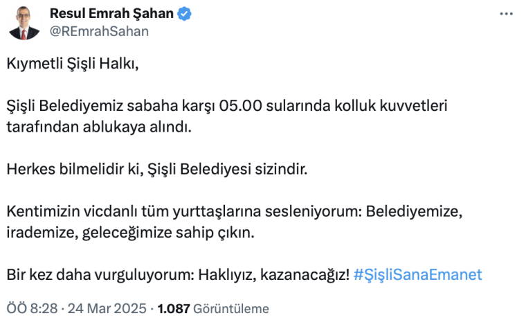 Şişli Belediye Başkanı Resul Emrah Şahan, 'kent uzlaşısı’ soruşturması kapsamında tutuklandı.