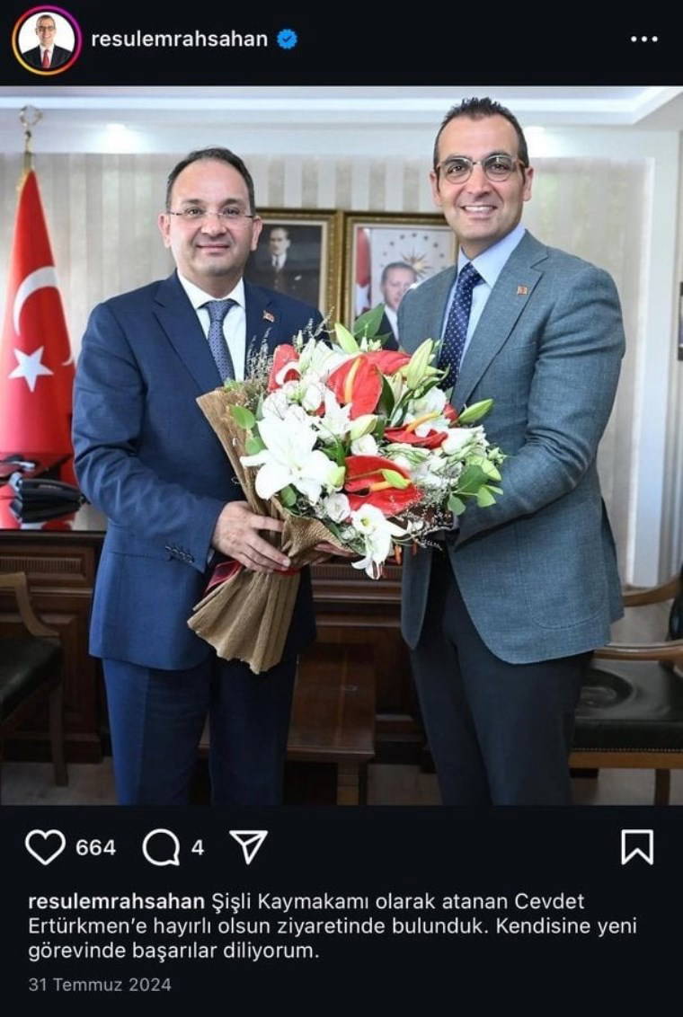 Tutuklanan Şişli Belediye Başkanı Emrah Şahan, temmuz ayında, Şişli’ye kaymakam olarak atanan Cevdet Ertürkmen’i ziyaret etmişti.