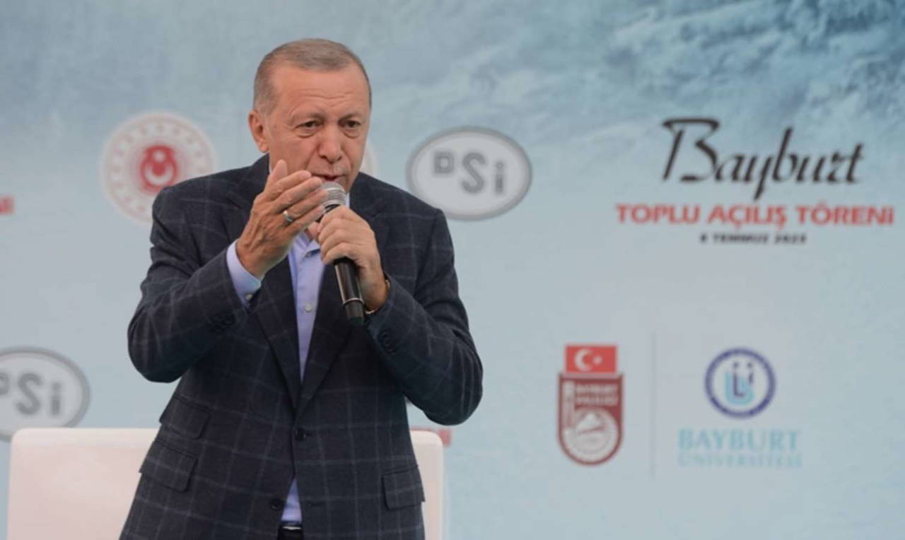 AKP'li Cumhurbaşkanı Recep Tayyip Erdoğan, genel seçimde yüzde 80'in üzerinde oy desteği aldığı Bayburt'a "teşekkür" ziyaretinde bulundu, "toplu açılış töreni" adı altında miting yaptı.