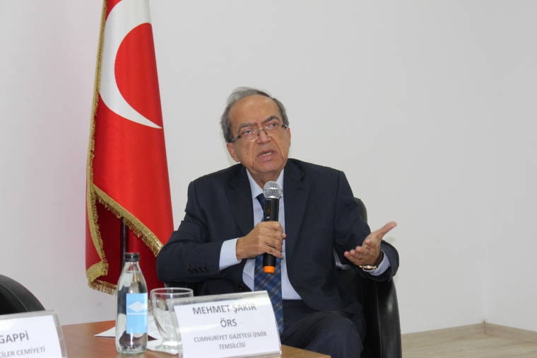 Moderatörlüğünü şair-yazar Haluk Işık üstlenirken konuşmacılar ise Cumhuriyet Ege Bölge Temsilcisi Mehmet Şakir Örs ve İzmir Gazeteciler Cemiyeti Başkanı Dilek Gappi oldu.