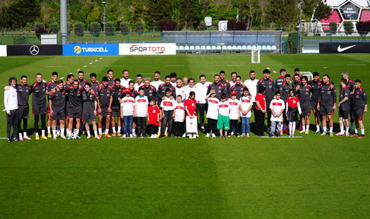 Uluslararası Lösemili Çocuklar Haftası'nın 23. yılı sebebiyle, Lösemili Çocuklar Vakfından (LÖSEV) gelen çocuklar, idman öncesinde milli futbolcularla hatıra fotoğrafı çektirdi.