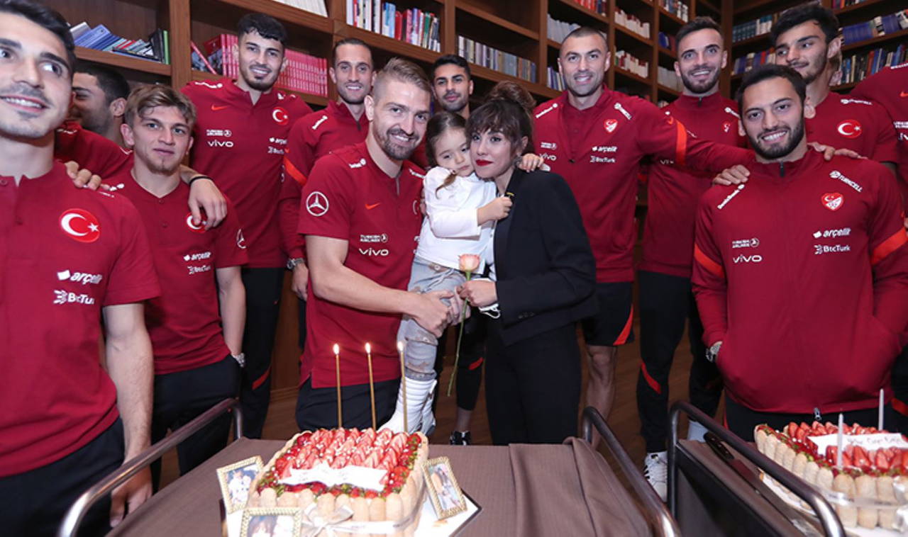 Yeniden milli takımda olmaktan duyduğu mutluluğu ifade eden Caner, kendisi için yapılan sürprizlere teşekkür ederek tebrikleri kabul etti.