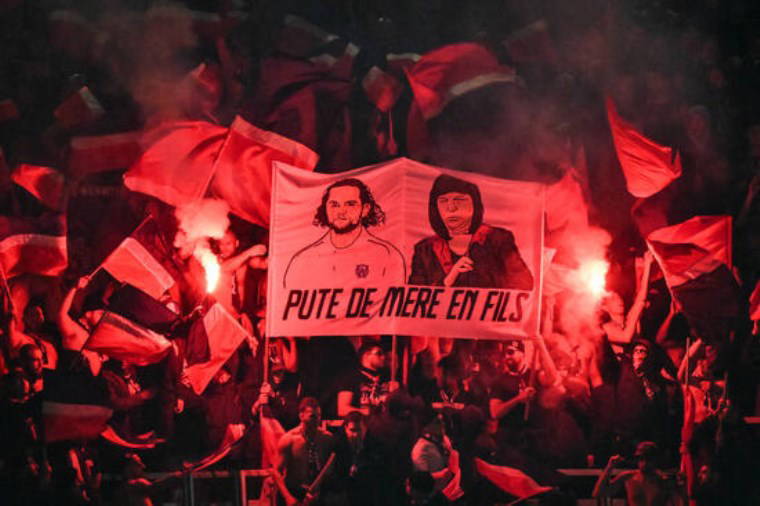 PSG taraftarı, Rabiot'nun menajerliğini üstlenen annesi ve Rabiot'nun fotoğraflarının bulunduğu bir pankart açarak "O....u ve o.......n ç....u" şeklinde küfürlü tezahüratlarda bulundu.