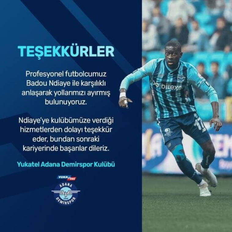 Adana Demirspor, Badou Ndiaye ile yolların ayrıldığını duyurdu.