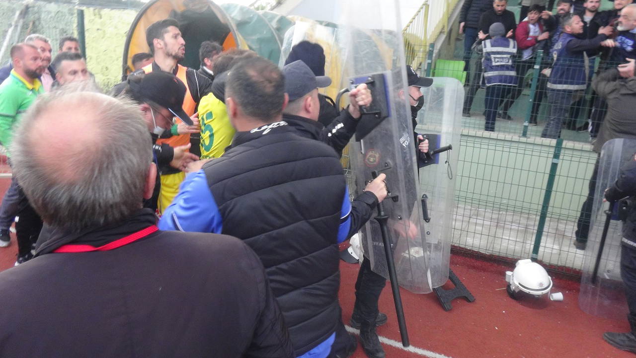 Çıkan tartışma polis ekiplerinin müdahalesiyle sona ererken, gerginlik çıkartan taraftarlar tribünden uzaklaştırıldı.