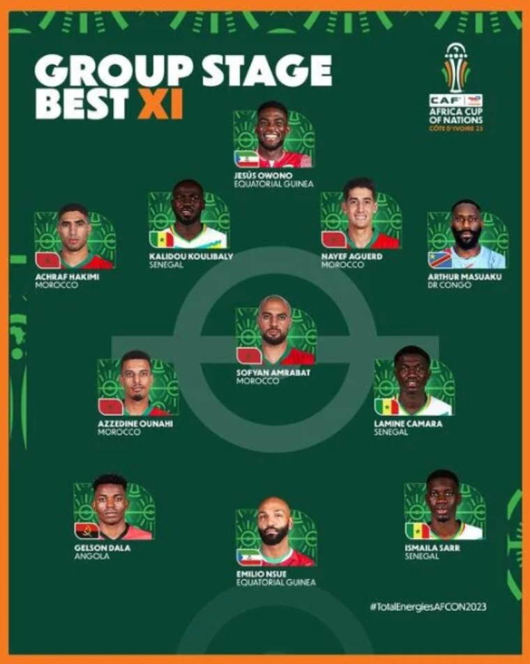 Afrika Futbol Konfederasyonu, 2024 Afrika Uluslar Kupası'nda grup aşamasının en iyi 11'ini açıkladı.