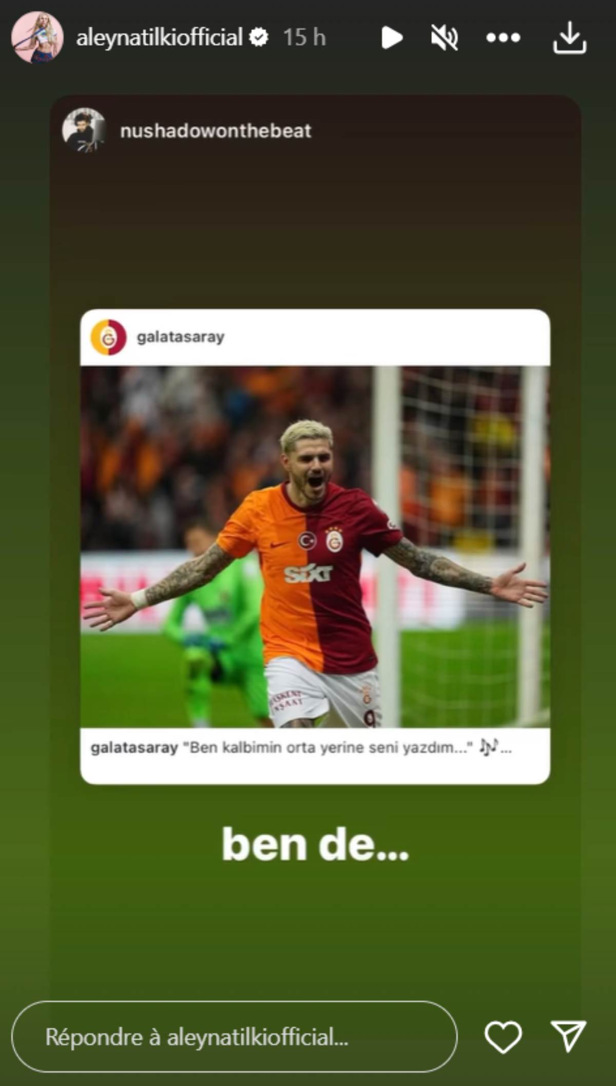 Başarılı şarkıcı, Galatasaray'ın Icardi paylaşımını hikayesinde paylaştı.