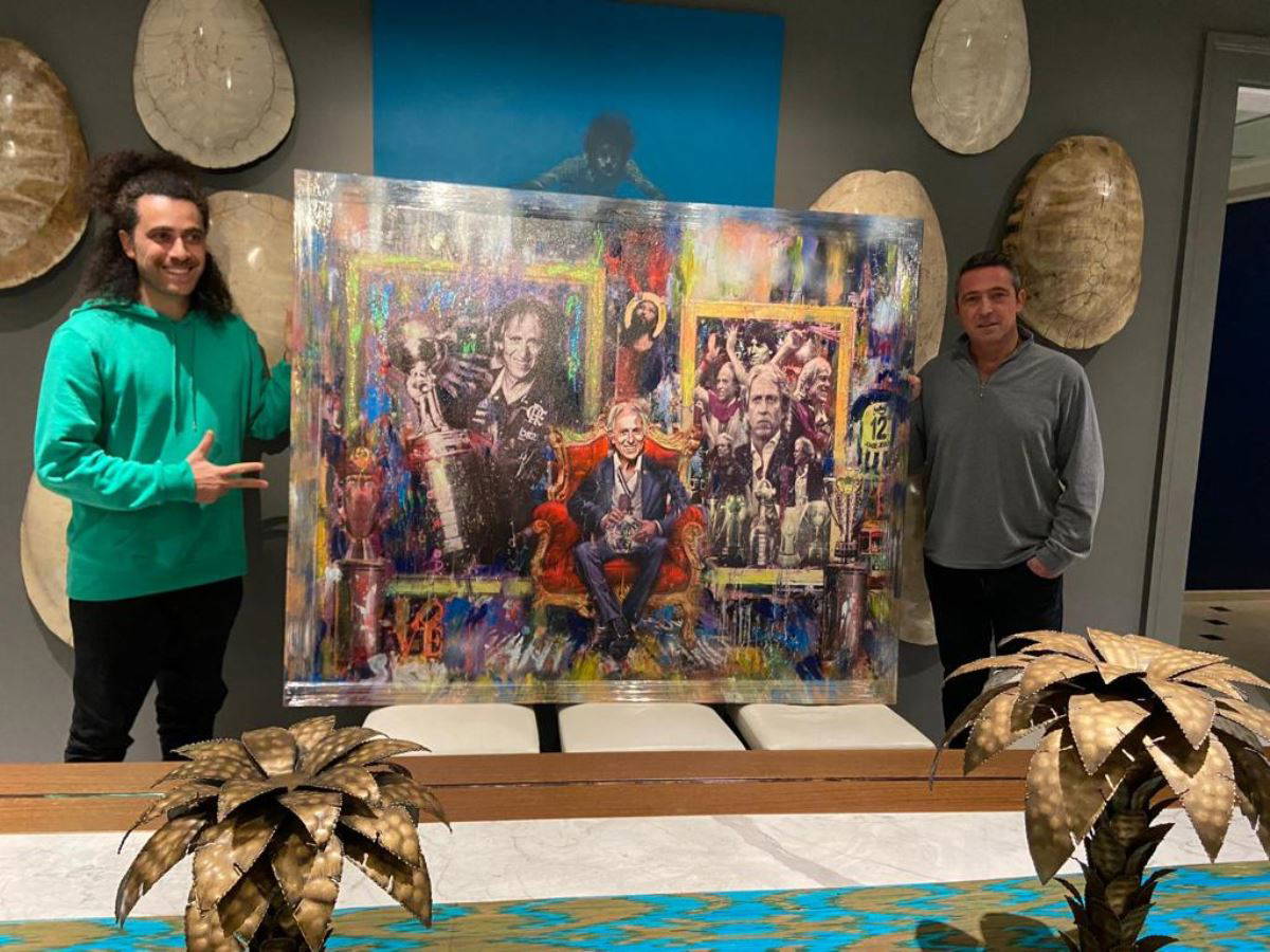Çocukluğundan bu yana yaptığı 'akrilik painting' çizimlerle spor dünyasından önemli isimleri resmeden Ersan Kay'ı arayarak Jorge Jesus için özel bir çalışma isteyen Fenerbahçe Başkanı Ali Koç, yapılan tabloyu yeni yıl hediyesi olarak Jesus'a takdim etti.