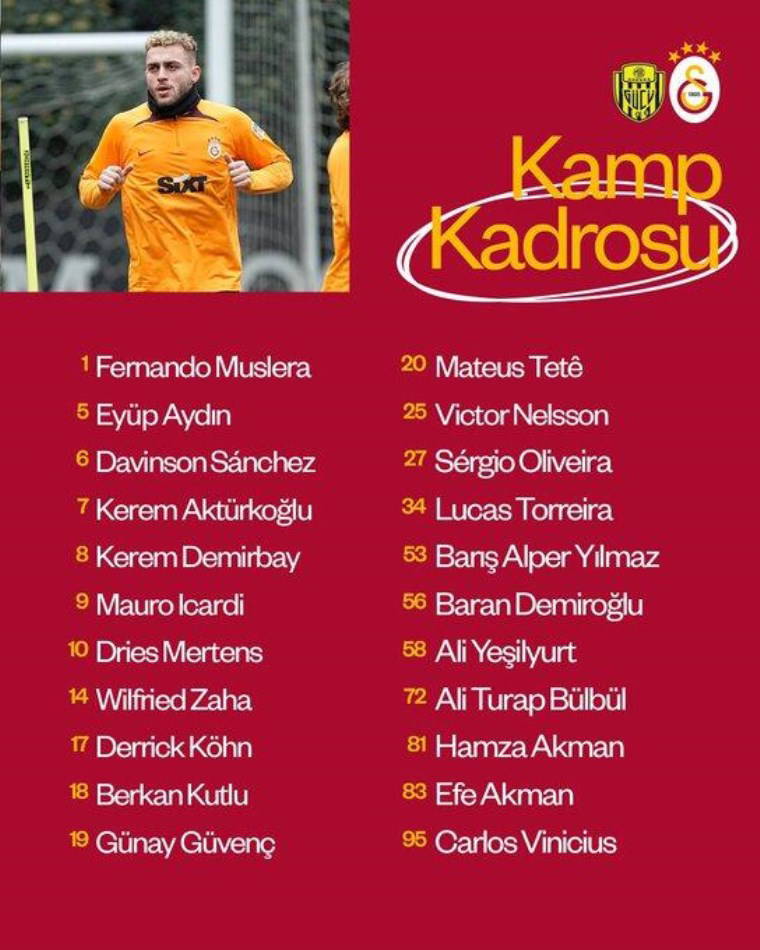 Süper Lig'in 26. haftasında Ankaragücü ile deplasmanda karşılaşacak olan Galatasaray'ın kamp kadrosu belli oldu.