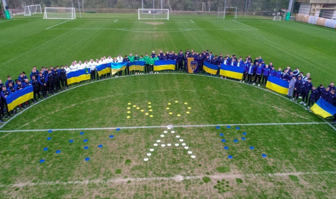 Kaldıkları otelin antrenman sahasında ülkelerine destek ve moral vermek için bir araya gelen 7 takımdan yaklaşık 200 oyuncu ve yönetici, İngilizce ve Rusça 'Savaşa Hayır' mesajı verdi. Rusça "Yaşasın Ukrayna, kahramanlarımız yaşasın" sloganı atan oyuncular, birbirlerine sarılarak destek oldu. Antrenmanda kullanılan çanaklarla yeşil saha üzerine İngilizce 'Savaşa Hayır' yazıldı.