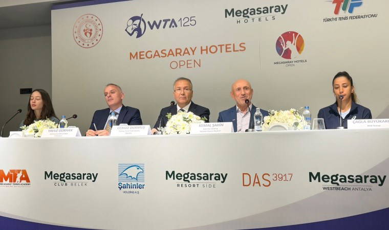 26-31 Mart tarihleri arasında Megasaray Tenis Akademi kortlarında gerçekleşecek WTA 125 kategorisindeki Megasaray Hotels Open’ın basın toplantısı Türkiye Tenis Federasyonu Başkanı Cengiz Durmuş, Antalya Gençlik ve Spor İl Müdürü Yavuz Gürhan, Şahinler Holding Yönetim Kurulu Başkanı Kemal Şahin, milli sporcularımız Çağla Büyükakçay ve Zeynep Sönmez’in katılımıyla gerçekleşti.