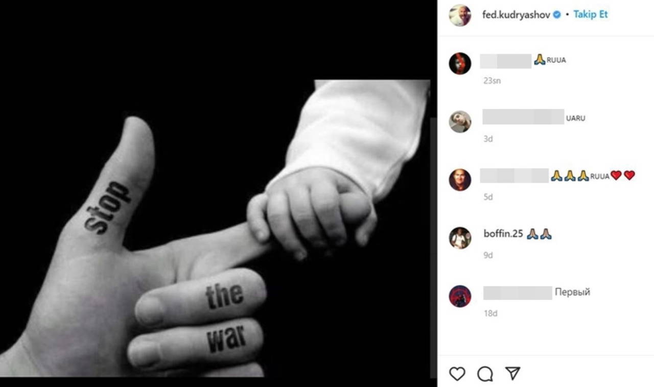 Spor Toto Süper Lig ekiplerinden Fraport TAV Antalyaspor'da forma giyen ve Rusya Milli Takımı'nın da oyuncusu olan 34 yaşındaki Fedor Kudryashov, sosyal medya hesabından yaptığı paylaşımla Rusya'nın Ukrayna'ya düzenlediği harekata tepki gösterdi. İngilizce olarak 'Savaşı Durdur' anlamına gelen 'Stop The War' yazılı paylaşıma, Kudryashov'un takım arkadaşı Belçikalı kaleci Ruud Boffin de yorum yazarak destek verdi.