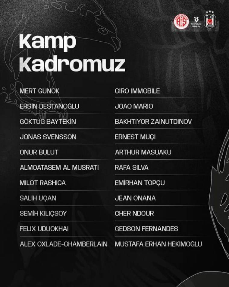 Süper Lig'de Antalyaspor ile karşılaşacak Beşiktaş, bu maçın kamp kadrosunu açıkladı.