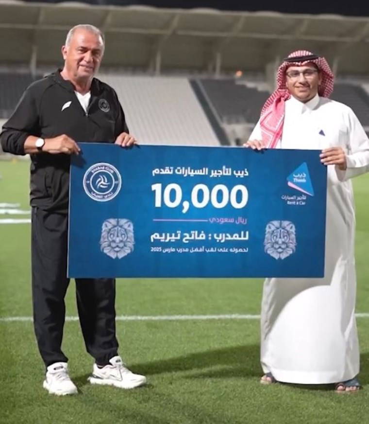 Al Shabab'ın paylaşımında Fatih Terim'e 10 bin Suudi Arabistan Riyali (2.450 Euro) tutarında çek verildiği görüldü.