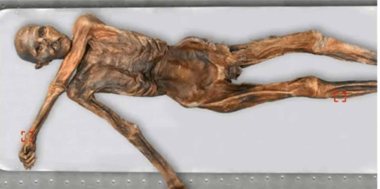 Ötztal Alpleri'nde 1991 yılında yollarını kaybeden iki Alman turist tarafından bulunan Ötzi'nin üzerinde daha önce yapılan incelemelerde buz adamın 40 ila 50 yaşlarında olduğu ve büyük olasılıkla sol omzuna saplanan okun yol açtığı kanama nedeniyle yaşamını yitirdiği belirlenmişti.