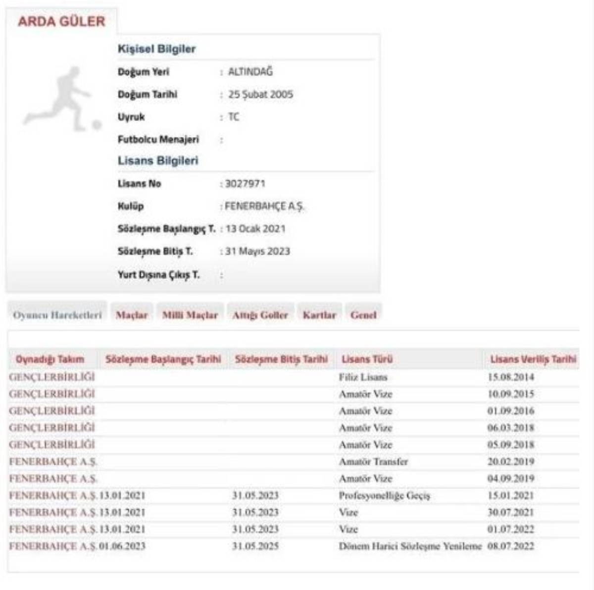 Fenerbahçe, genç yıldızı Arda Güler ile olan sözleşmesini uzattı. Kulübün, TFF'ye yaptığı bildiride genç yıldızın sözleşmesinin 2025 yılına kadar uzatıldığı açıklandı.