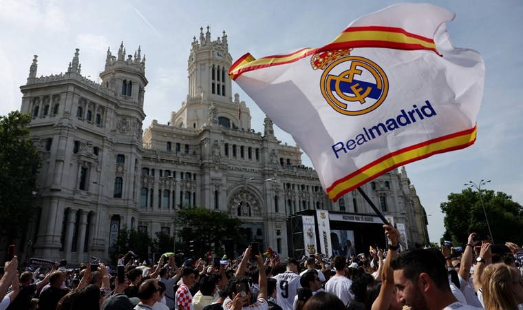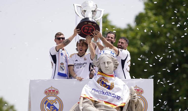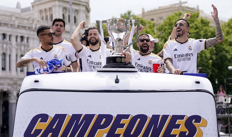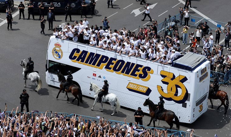 Bu sezon İspanya Süper Kupası'ndan sonra lig şampiyonluğunu da kazanan Real Madrid'in kent merkezindeki kutlamalarını binlerce taraftarı izledi.
