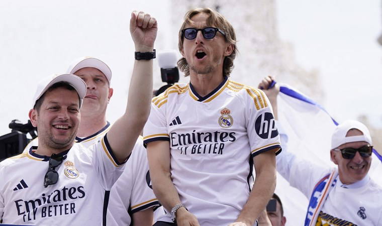 İtalyan teknik direktör Ancelotti, kulüp marşını taraftarlarla birlikte söylerken, meydanlardan gelen "Modric bizimle kal", "Altın Top Vinicius'un" tezahüratları öne çıktı.