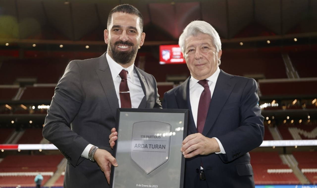 La Liga 16. haftasında oynanan Atletico Madrid-Barcelona maçına davet edilen Arda Turan, karşılaşmanın ardından kulüp başkanı Enrique Cerezo tarafından, kırmızı-beyazlı ekipte oynadığı maçlara atfen bir plaket aldı.
