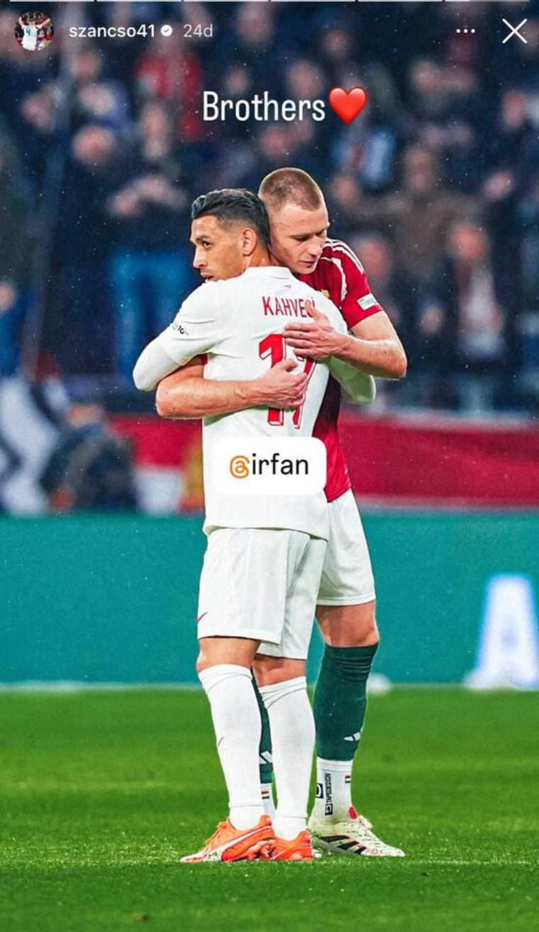 Paylaşımda eski takım arkadaşı İrfan Can Kahveci ile sarıldığı bir fotoğrafı koyan Szalai, "Kardeşler" notuyla Türk futbolcuya olan sevgisini ifade etti.