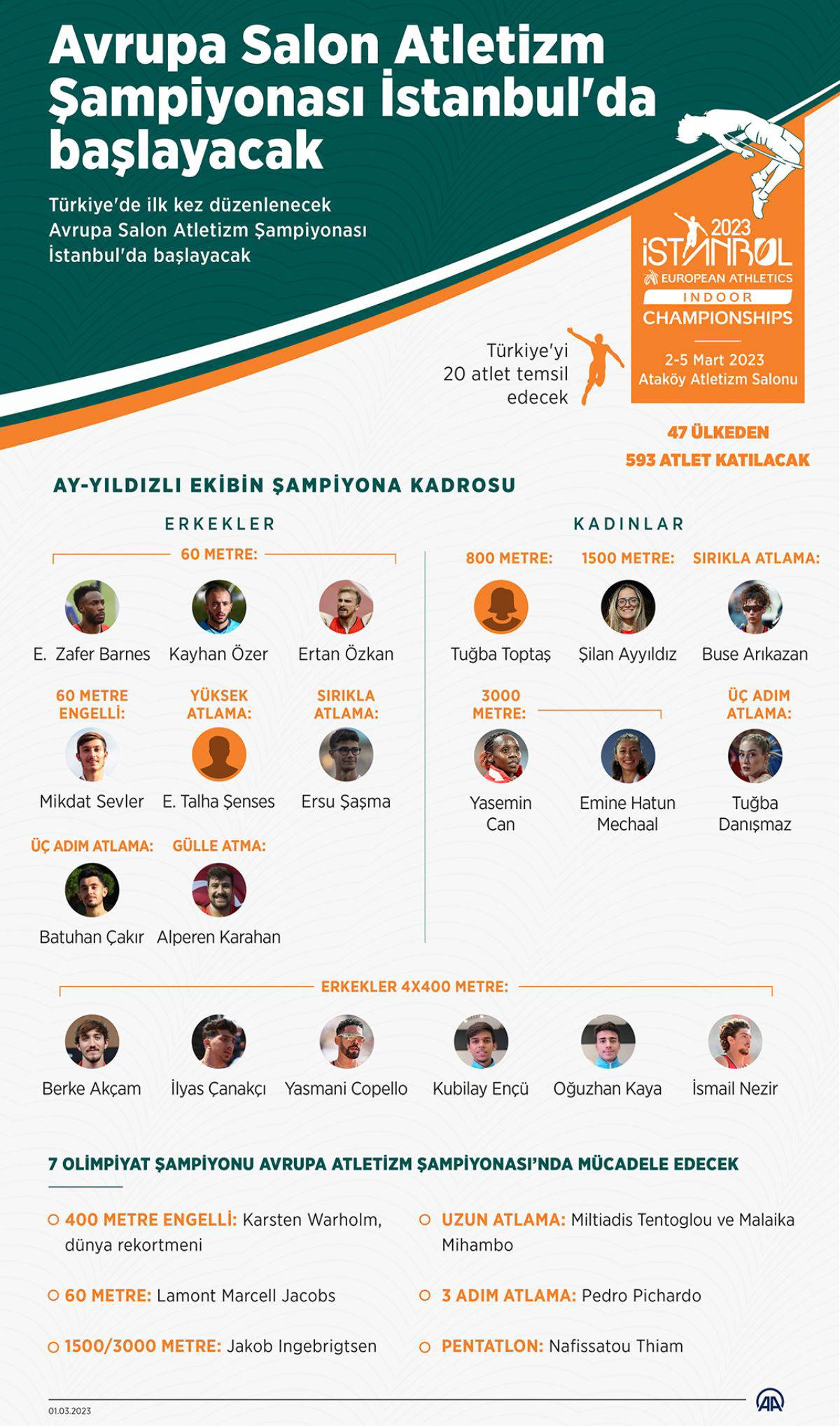 Ataköy Atletizm Salonu'nda 5 Mart'a kadar devam edecek organizasyona 47 ülkeden 292'si kadın olmak üzere 593 atlet katılacak.