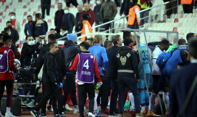 Sivas'ta futbolcular, teknik heyet ve tribünlerin büyük tepki gösterdiği hakem Bahattin Şimşek ile yardımcıları, sahadan polis eşliğinde çıkabildi.
